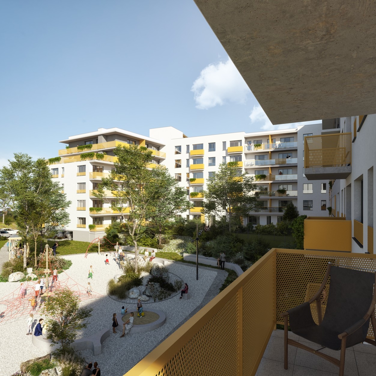 Three elegant residential buildings are currently rising in two phases in Prague’s Barrandov districtin Prague’s Barrandov district, offering stunning views of the surrounding landscape and the Prague skyline. Surrounded by nature, the development provides a peaceful and pleasant living environment. The two phases will offer 276 modern apartments and 270 parking spaces. Just a few steps from the buildings, a tram stop connects you to the city center in only 10 minutes. Live where the Prokop and Dalej Valleys begin – close to nature, yet within easy reach of everything you need for everyday life. Schools, kindergartens, a swimming pool, gym, and restaurants are all within comfortable walking distance.
